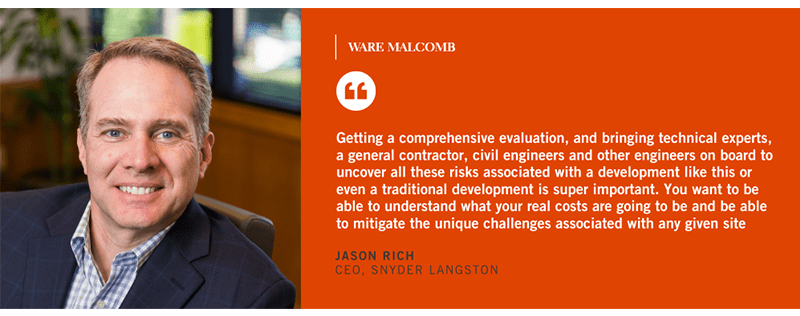 In terms of potential construction challenges, Jason provided insight on the best approach to a successful split-level build. While due diligence is often a foundational piece of any development, he says taking additional and early steps here can make all the difference. Noting that this concept is not a one-size-fits-all solution, he stresses the importance of a highly diverse and specialized team working cohesively to maximize square footage and foresee major costs or site accommodations.