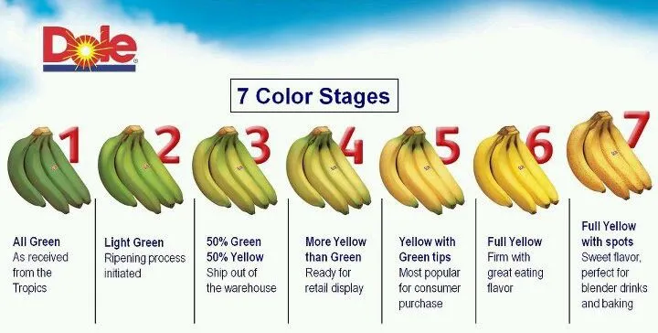Upon delivery to grocery distribution centers, bananas are inspected to determine grade and average ripening speed. Determining the grade of the banana allows the grocers to tell how fast the fruit is ripening and helps in scheduling the proper ripening cycle.