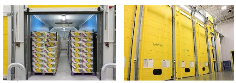 Banana ripening chambers within the grocery distribution facilities allow grocers to control the banana ripeness for delivery to stores based upon volume.